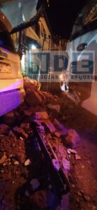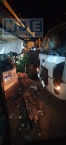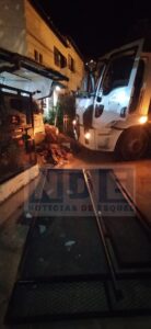 El vehículo de gran porte había sido estacionado “de culata” en la entrada de la carpintería ubicada en Fontana al 900, cuando comenzó a moverse por la pendiente para pasar por encima de la plazoleta y chocar contra una casa, partiendo el paredón, un portón, el techo del garaje y golpeando una camioneta Jeep que se encontraba estacionada.