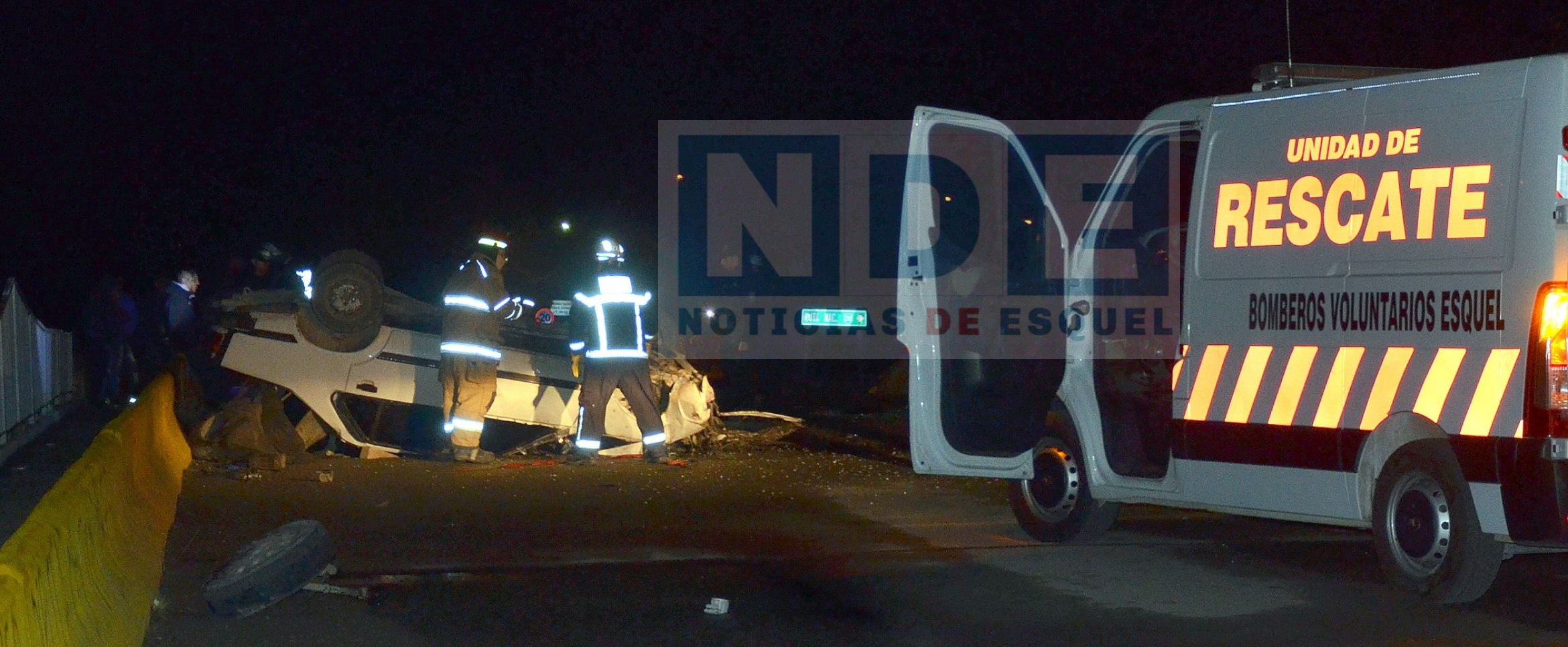 Choque y vuelco en el puente del Arroyo Esquel con una persona atrapada