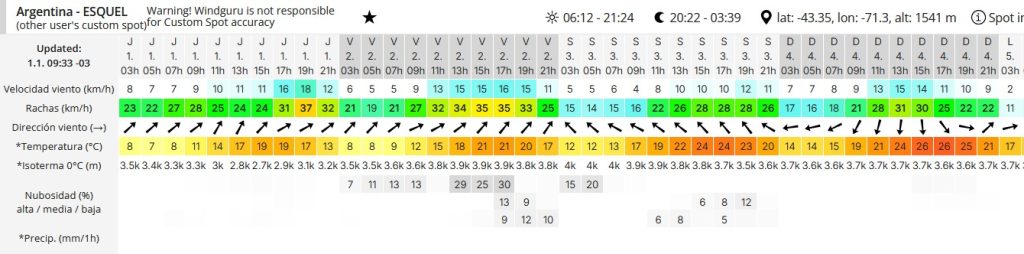 Comenzamos este informe climático, con datos de la Estación Meteorológica de Noticias de Esquel, contando que la máxima del último día del año 2025 alcanzó los 30°c y que la temperatura a las 00 horas cuando llegó el momento del brindis familiar, fue de 17°c en Esquel.