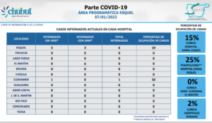 El mismo parte informa que se duplicó la cantidad de personas internadas en terapia intensiva del Hospital, donde ayer había 3 personas hoy son 6 los internados en el área de terapia intensiva del Hospital Zonal de Esquel, de los cuales 3 están con asistencia respiratoria mecánica.