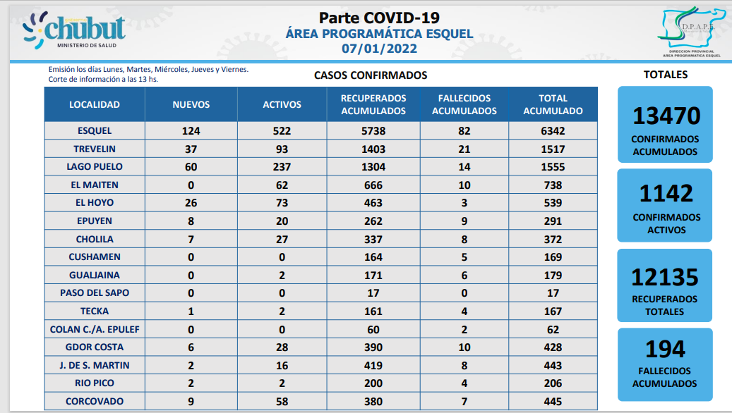 El último parte emitido el miércoles 7/01 desde el Área Programática de Salud anuncia 124 casos positivos nuevos de COVID 19 en nuestra ciudad, que ya tiene 522 casos activos. Con los casos que se van sumando en esto que podría ser la tercera ola de COVID, la ciudad ya superó los 6 mil casos desde que inició la pandemia, ya que al día de hoy sumamos un total de 6342 casos positivos desde que se inició la pandemia.