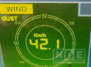 Por su parte el viento sopló a unos 27.7 km/h alcanzando la ráfaga máxima los 42.1 km/h a las 10:39 hs.