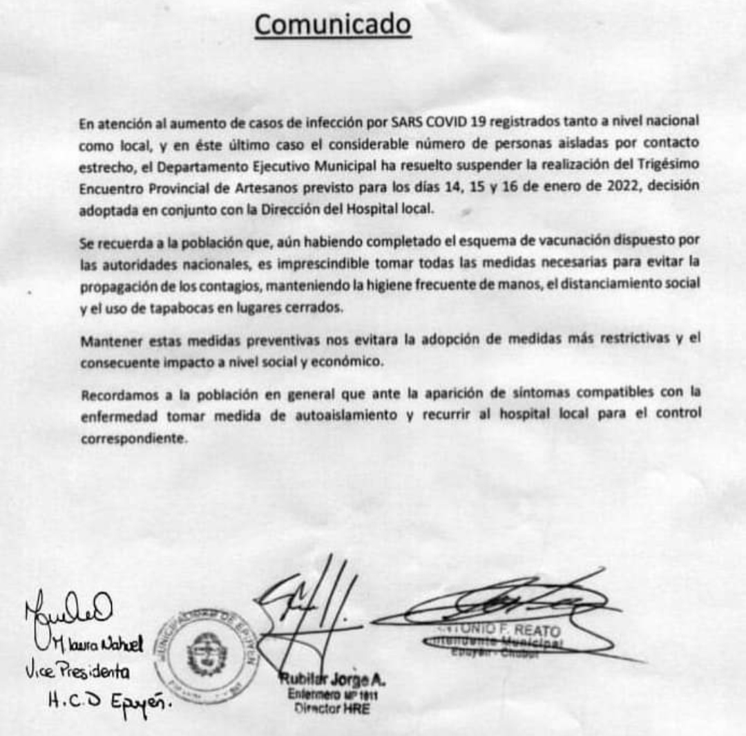 Durante el mes de enero varias fiestas regionales y nacionales estaban previstas de realizarse, pero la situación actual de la pandemia de COVID 19 hizo que algunas de ellas fueran suspendidas.