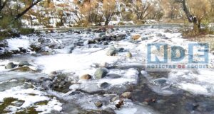 En estos días previos al invierno y luego de varios días de intenso frio por la ola de aire polar que azota nuestra zona, el cauce del Río Percy se encuentra casi cerrado por el hielo. Estamos hablando del sector de este río en el paraje Alto Río Percy. En el caso de los laterales del rio y sus cauces secundarios están totalmente congelados. También en algunas de los lugares más anchos de su cauce, el hielo invade la capa superior del río hasta que en algunos lugares amenaza cerrarse. Vecinos del lugar han reportado en los últimos días marcas térmicas cercanas a los -10°C.