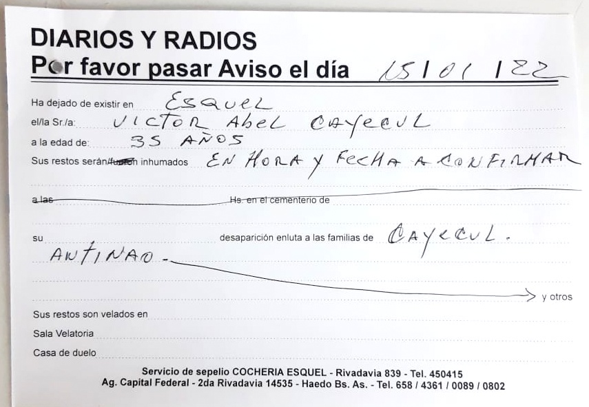 Necrológica. Víctor Abel Cayecul