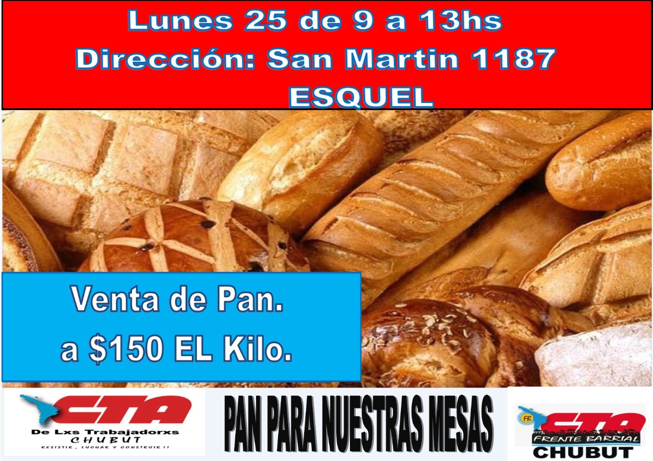 En el caso de Esquel será en San Martín 1187 Sede de ATECH, desde las 9:30 hasta el medio día venderán pan a 150 pesos el kilo, destinado a las familias.