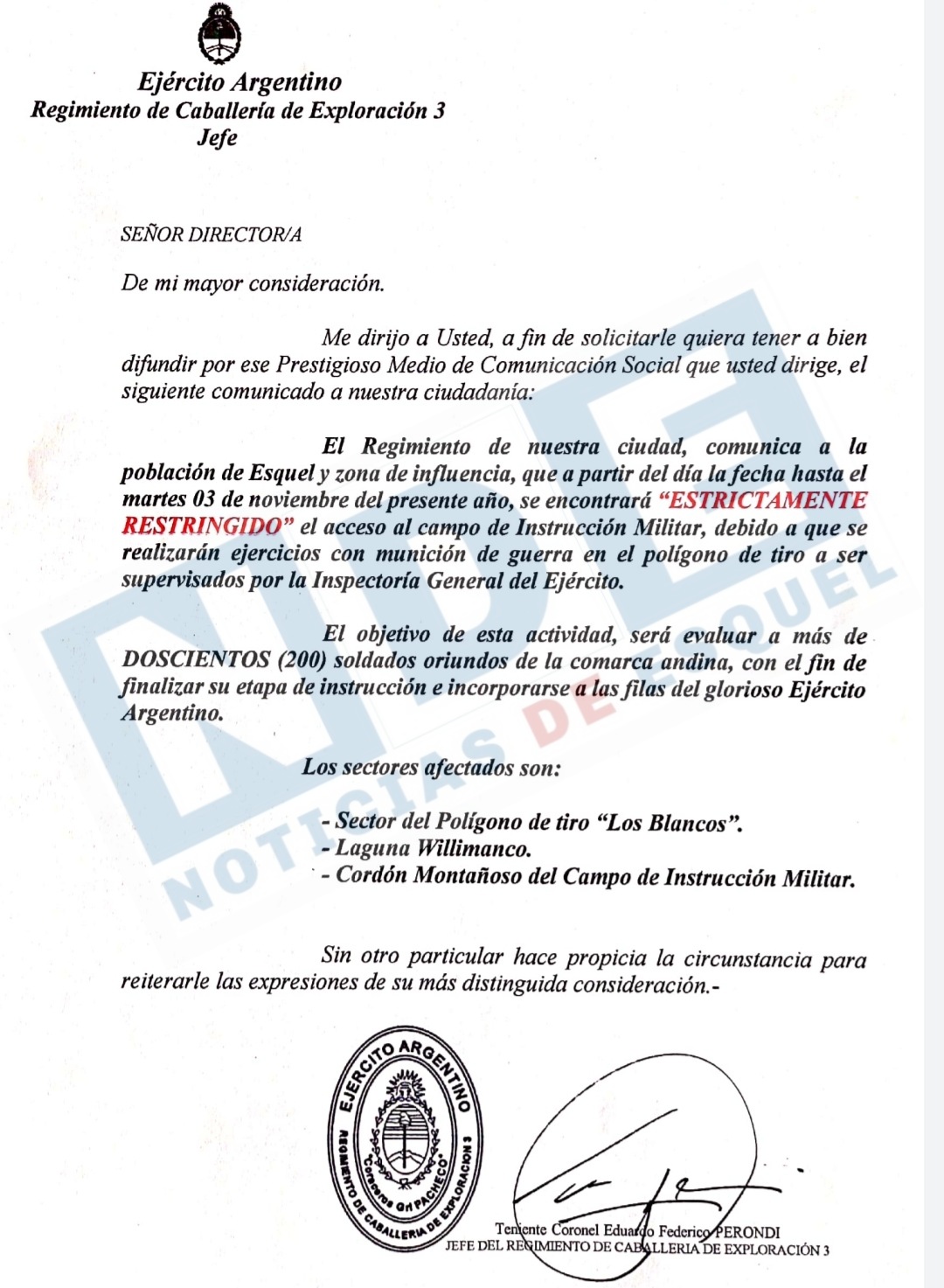 Queda estrictamente restringido el acceso a Laguna Willmanco y campo de instrucción militar
