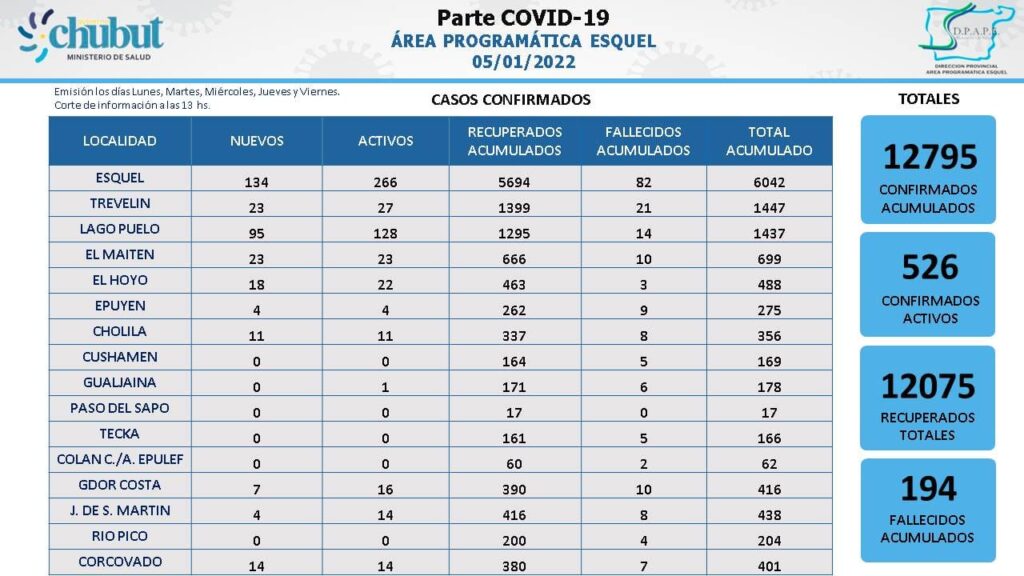 COVID 19. Esquel suma 134 casos positivos nuevos llegando a 266 los casos activos Leer más »