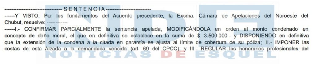 En las últimas horas salió la sentencia definitiva del Superior Tribunal de Justicia de Chubut, donde se determina que la provincia debe resarcir a Néstor Antieco, quien con el patrocinio letrado del Dr. Ricardo Gerosa Lewis, llevó adelante las acciones legales por el fallecimiento de su madre María Antieco. El 29 de agosto del 2018