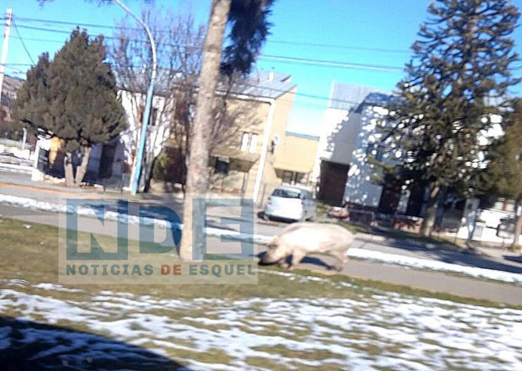 Un chancho suelto se pasea por las calles cerca del Melipal