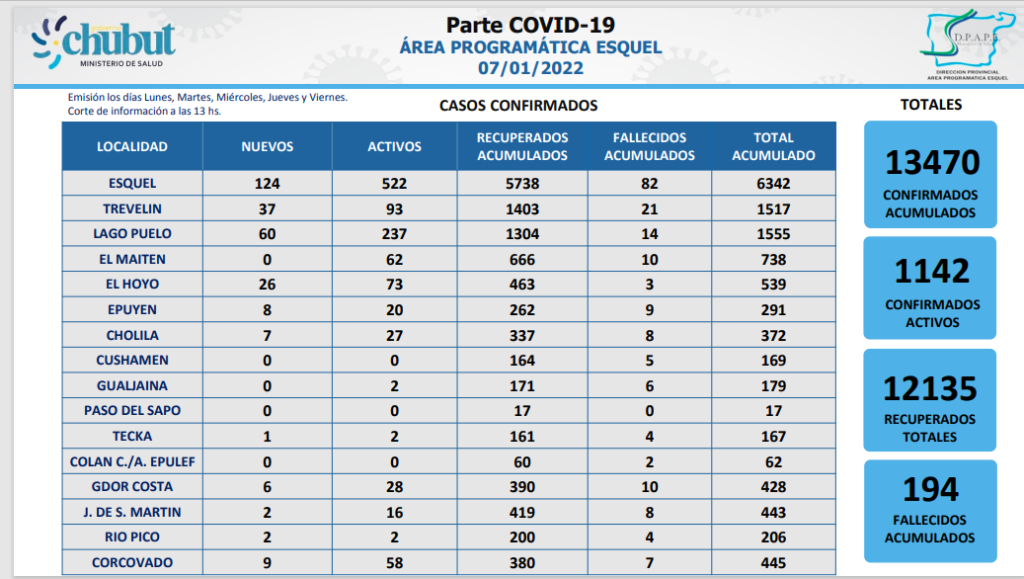 COVID 19. Esquel suma 124 casos positivos nuevos llegando a 522 los casos activos Leer más »