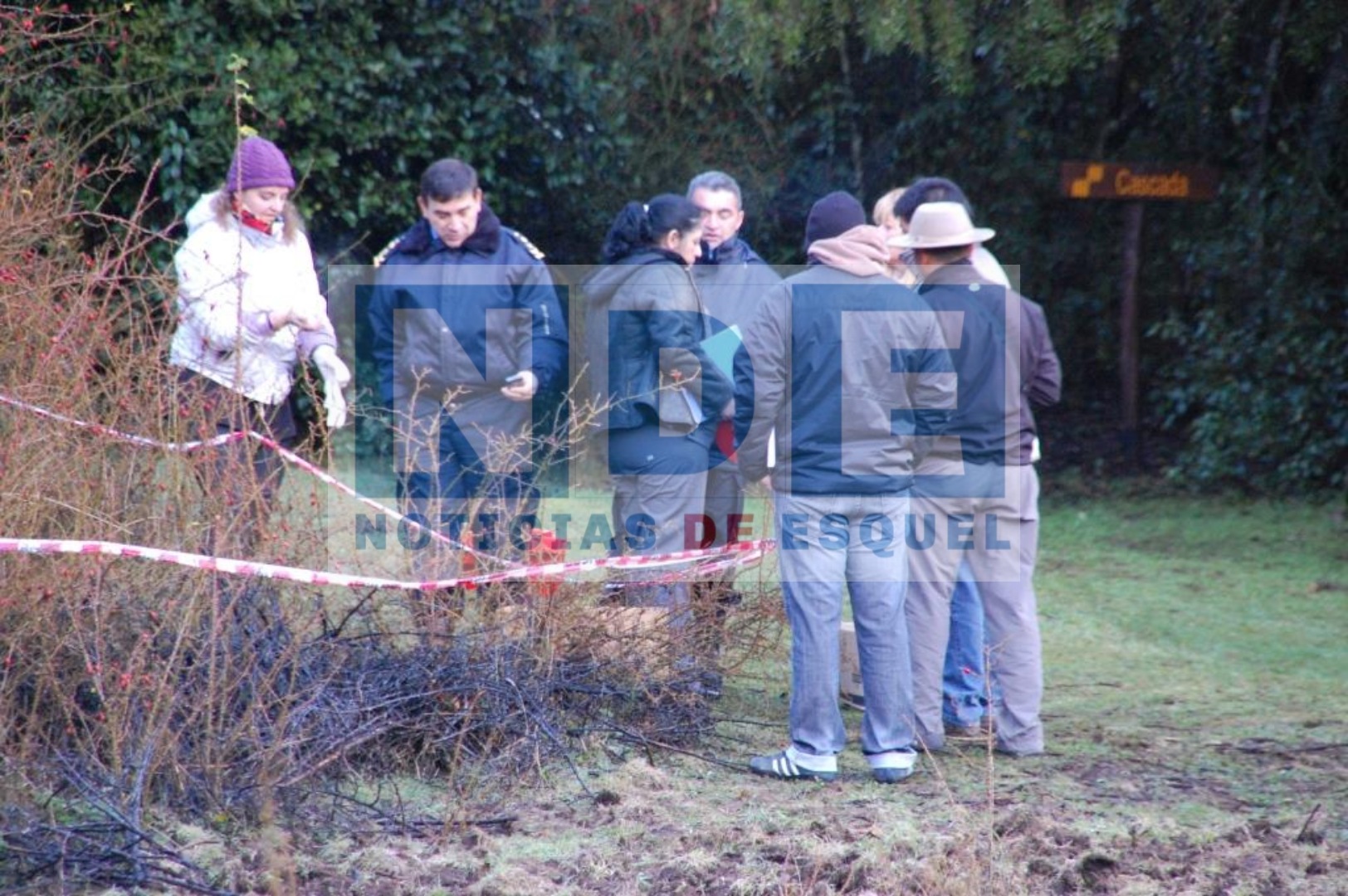Personal policial con peritos y el Fiscal de turno, se hicieron presentes en el lugar del hallazgo. El día siguiente, la policía hizo un rastrillaje con resultados negativos intentando encontrar más restos humanos u otros elementos probatorios. Entre el personal policial que se hizo presente, estaban el entonces Jefe de la Unidad Regional Esquel de Policía, Comisario Mayor Nelson Flores y el segundo jefe de esa unidad el Comisario Inspector Luis Bidera.