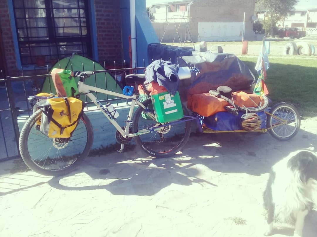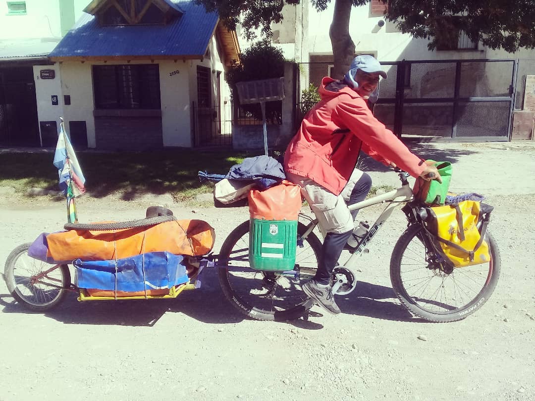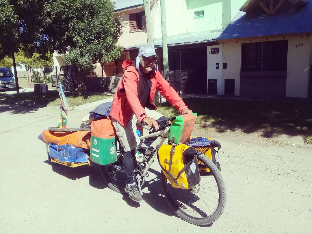 Después de pasar un mal momento cuando le sustrajeron su bicicleta y compañera de tantos kilómetros por Argentina y otros países, pudo emprender nuevamente su viaje al sur porque apareció un esquelense solidario que le donó un rodado con el que hoy retomó las rutas.