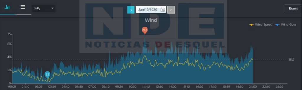 El viento se hizo sentir en la zona durante la jornada del viernes y te contamos en este informe, que velocidad alcanzaron las ráfagas máximas con datos de la Estación Meteorológica de Noticias de Esquel. Después de las 8 de la mañana las ráfagas comenzaron a intensificarse para superar a esa hora los 50 km/h. A partir de las 19 hs horas fue en disminución.