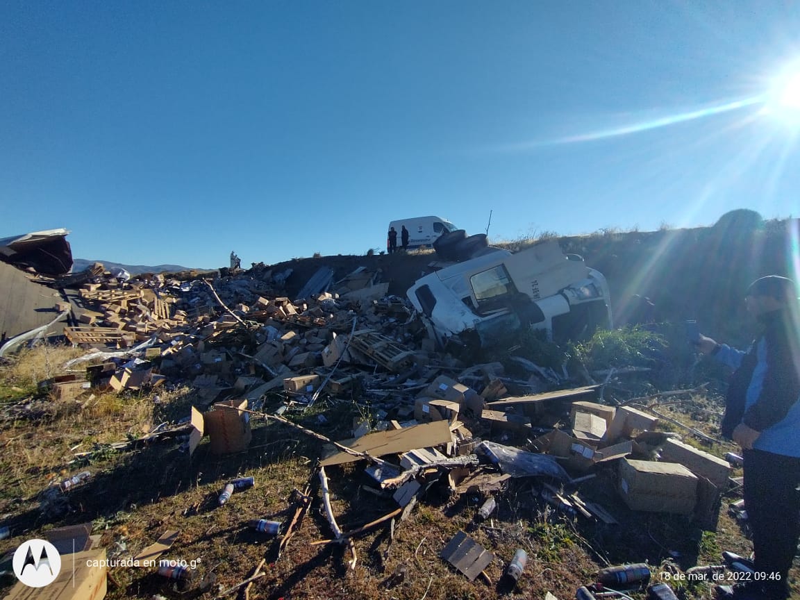 El accidente se produjo cerca de las 9:40 hs a unos 15 kms del cruce de las rutas 259 y 40 camino a Tecka. Se trató del vuelco de un camión marca Volvo de origen chileno, que viajaba desde Osorno a Punta Arenas. El conductor se encuentra lucido con escoriaciones a simple vista y viajaba solo. En un primer momento el alerta fue preocupante porque se informó que el camión trasladaba líquidos peligrosos. Se trataría de aerosoles.