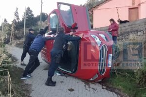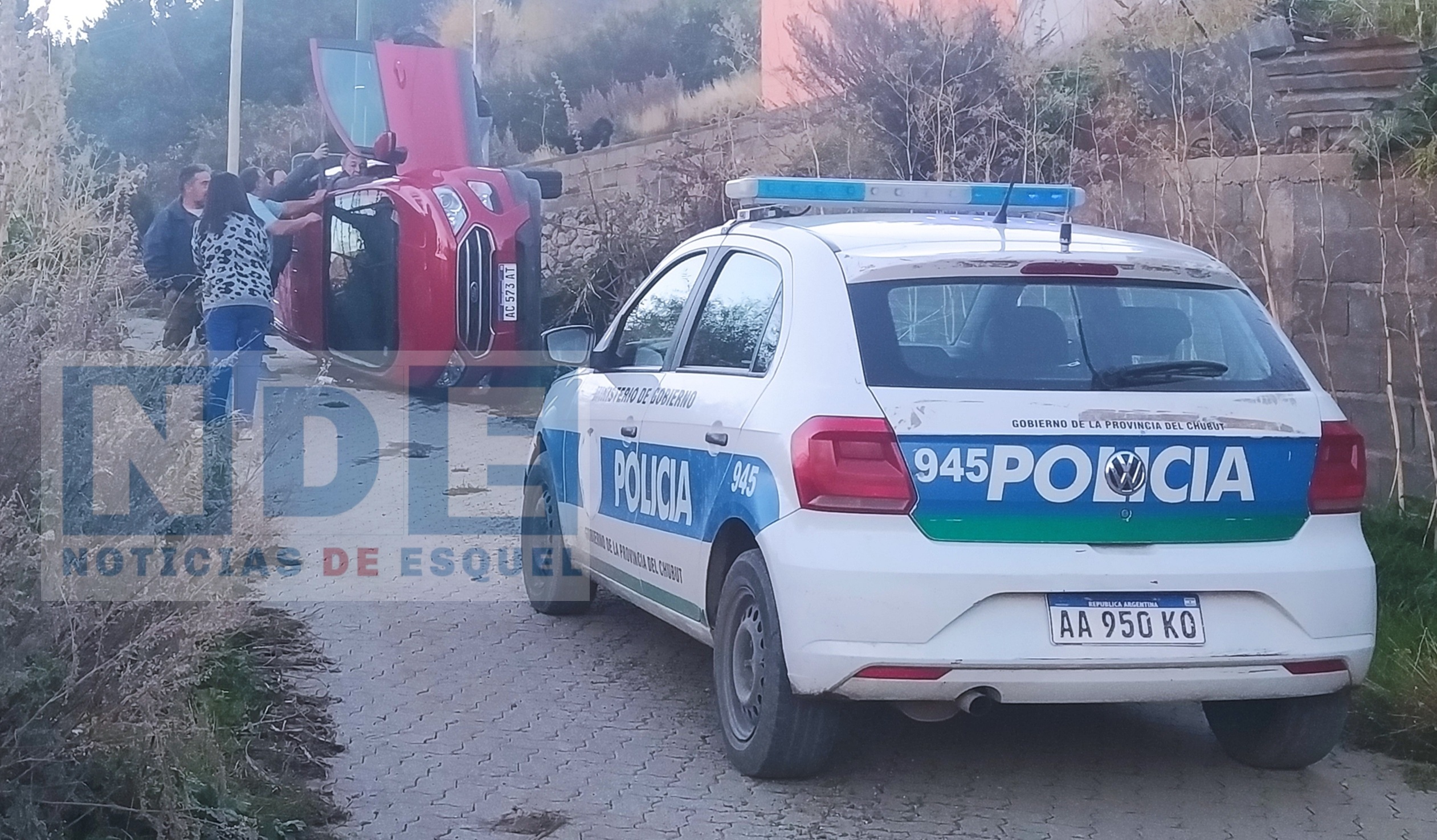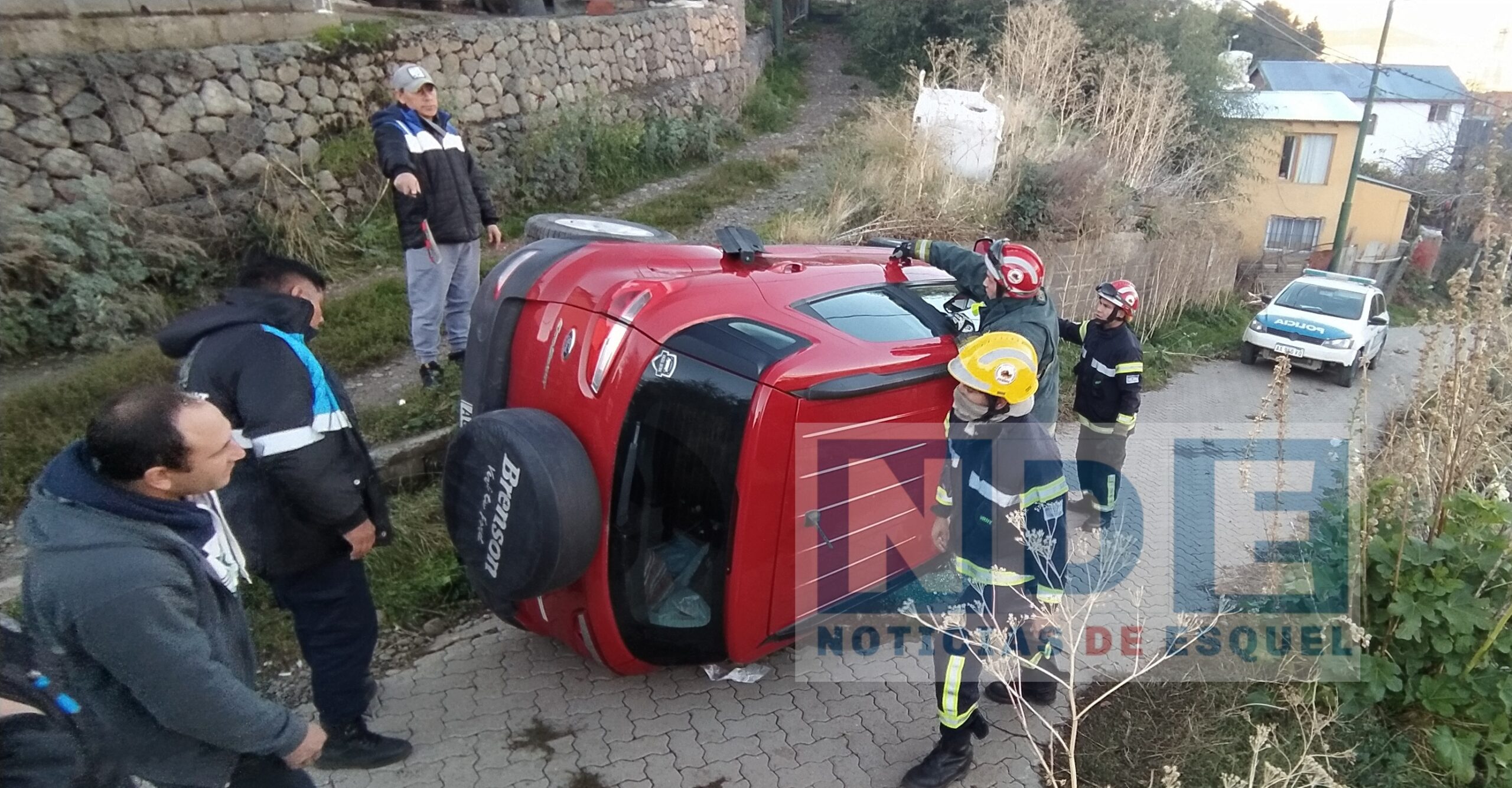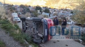 Fue en el pasaje Futalaufquen del Barrio Don Bosco, donde el conductor de una camioneta Ford Eco Sport color rojo, volcó sobre uno de sus laterales, quedando atrapado en su interior sin poder salir del rodado. Al tratarse de un hombre mayor de unos 70 años, fue dificultoso poder ayudarlo a salir de la camioneta que estaba recostada sobre uno de sus costados.